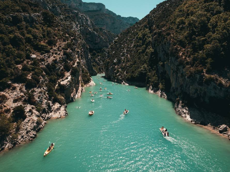 Boating in the bay between the slopes